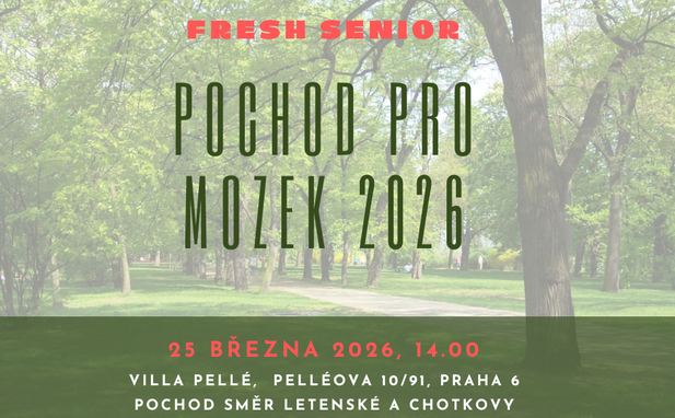 na Pochod pro mozek – trénink paměti v pohybu. Březen patří tradičně Národnímu týdnu trénování paměti a Týdnu mozku, celostátním akcím zaměřeným na podporu duševní kondice. V jejich rámci se připojíme k programu Pochod pro mozek, který spojuje pohyb na čerstvém vzduchu s jednoduchými cvičeními pro trénování paměti. S lektorkou Adrianou Kabele se vydáme na společnou procházku z Letenských sadů přes Chotkovy sady až k Letohrádku, během níž si vyzkoušíme hravé úkoly pro bystrou mysl.